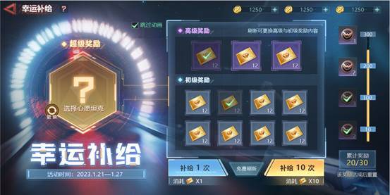 活动期间玩家可以定向补给获得T57或者其它已有的S级坦克。同时累计达到一定的补给次数可以领取额外奖励。
